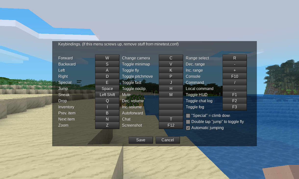 Some players prefer to use an inverted mouse. This can only be done by exiting Minetest and editing the
